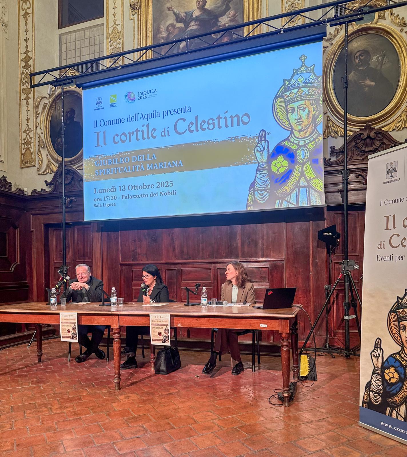“Il Giubileo della Spiritualità Mariana” è stato il tema dell’incontro pubblico che si è svolto nei giorni scorsi, al Palazzetto dei Nobili, nell’ambito della rassegna di appuntamenti promossa e sostenuta dal Comune dell’Aquila e denominata “Il Cortile di Celestino”.