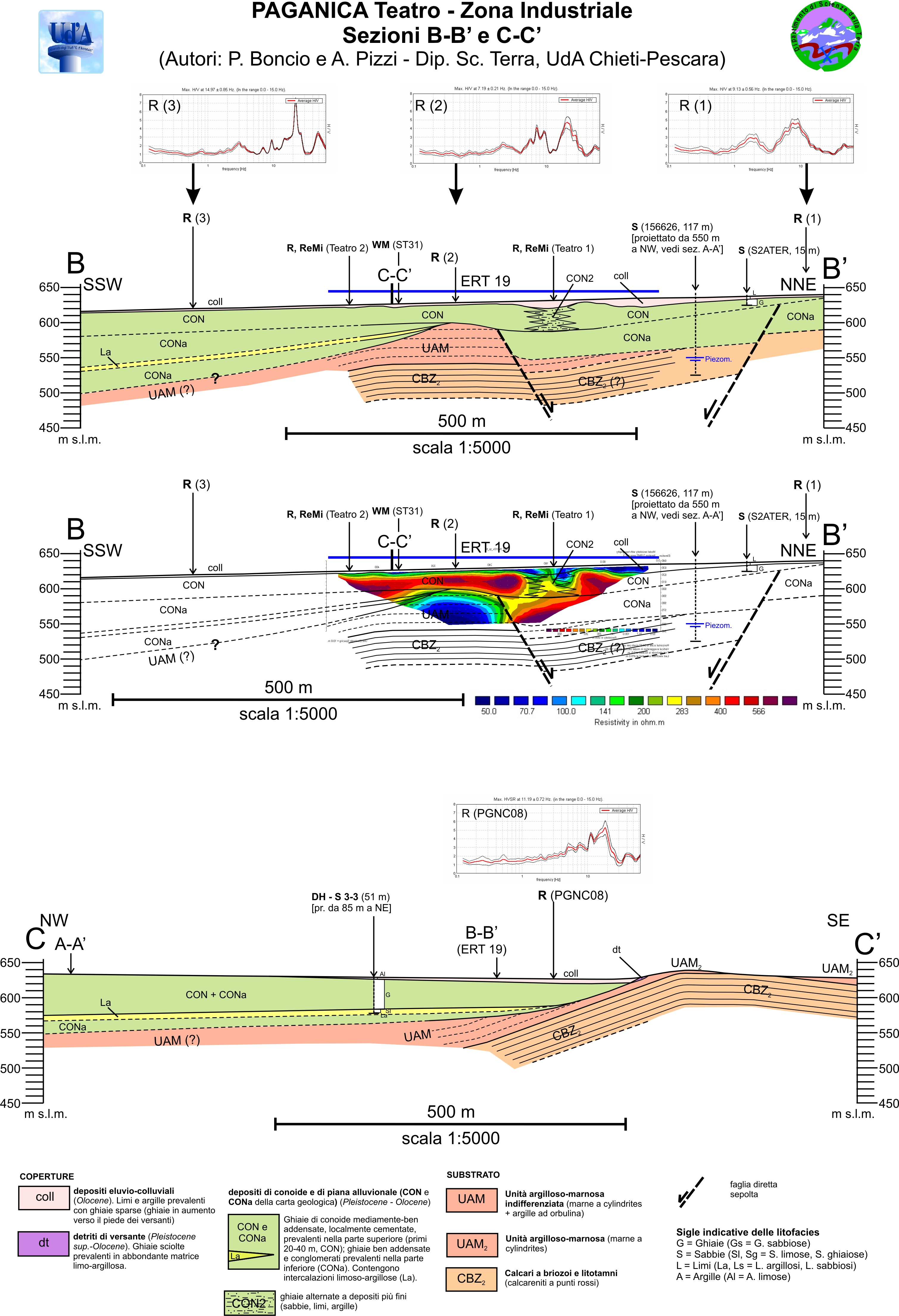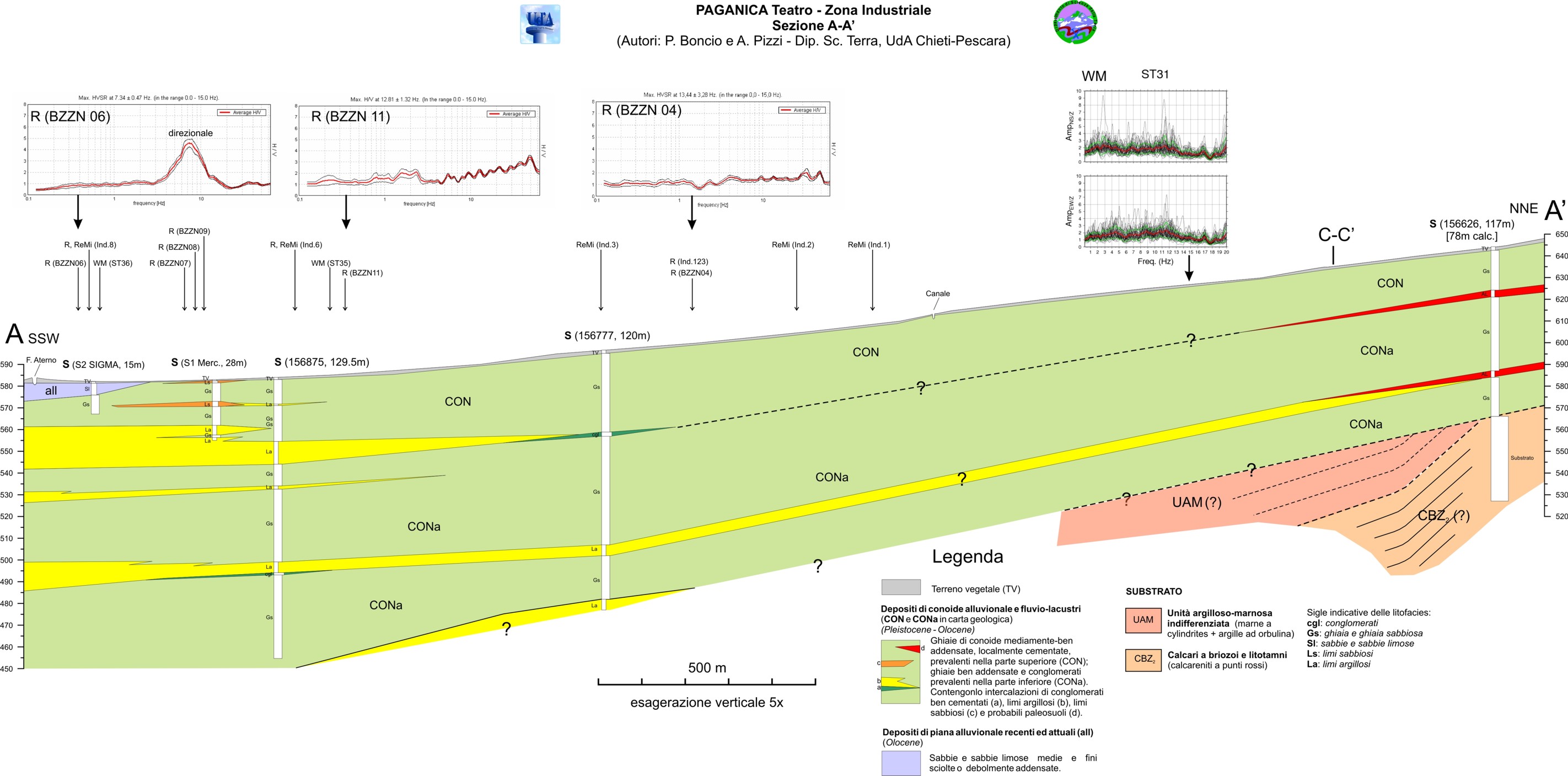 - Sezioni Geolitologiche B e C Paganica teatro, NSI, San Gregorio